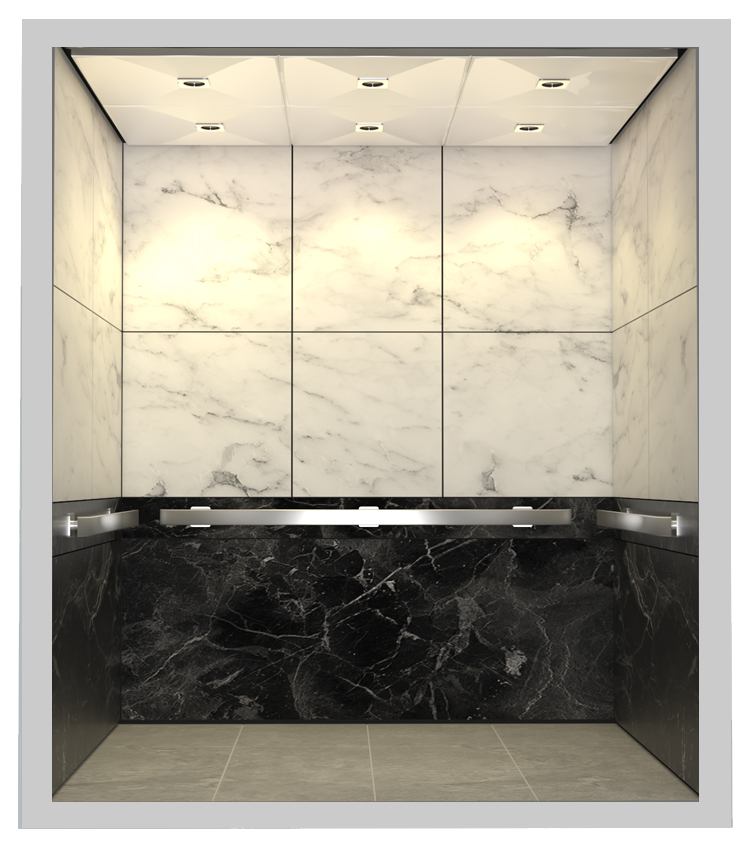* All renders are approximated and based in standard dimensions of an elevator cabin.